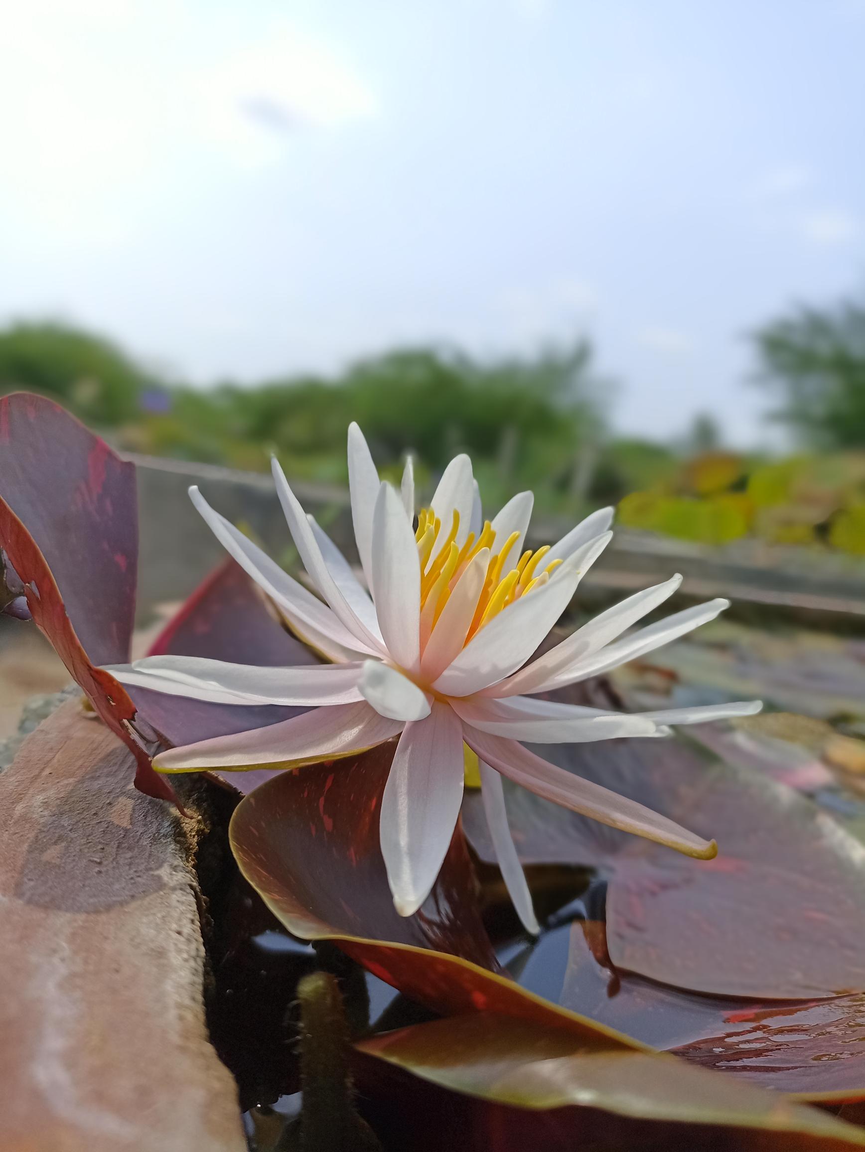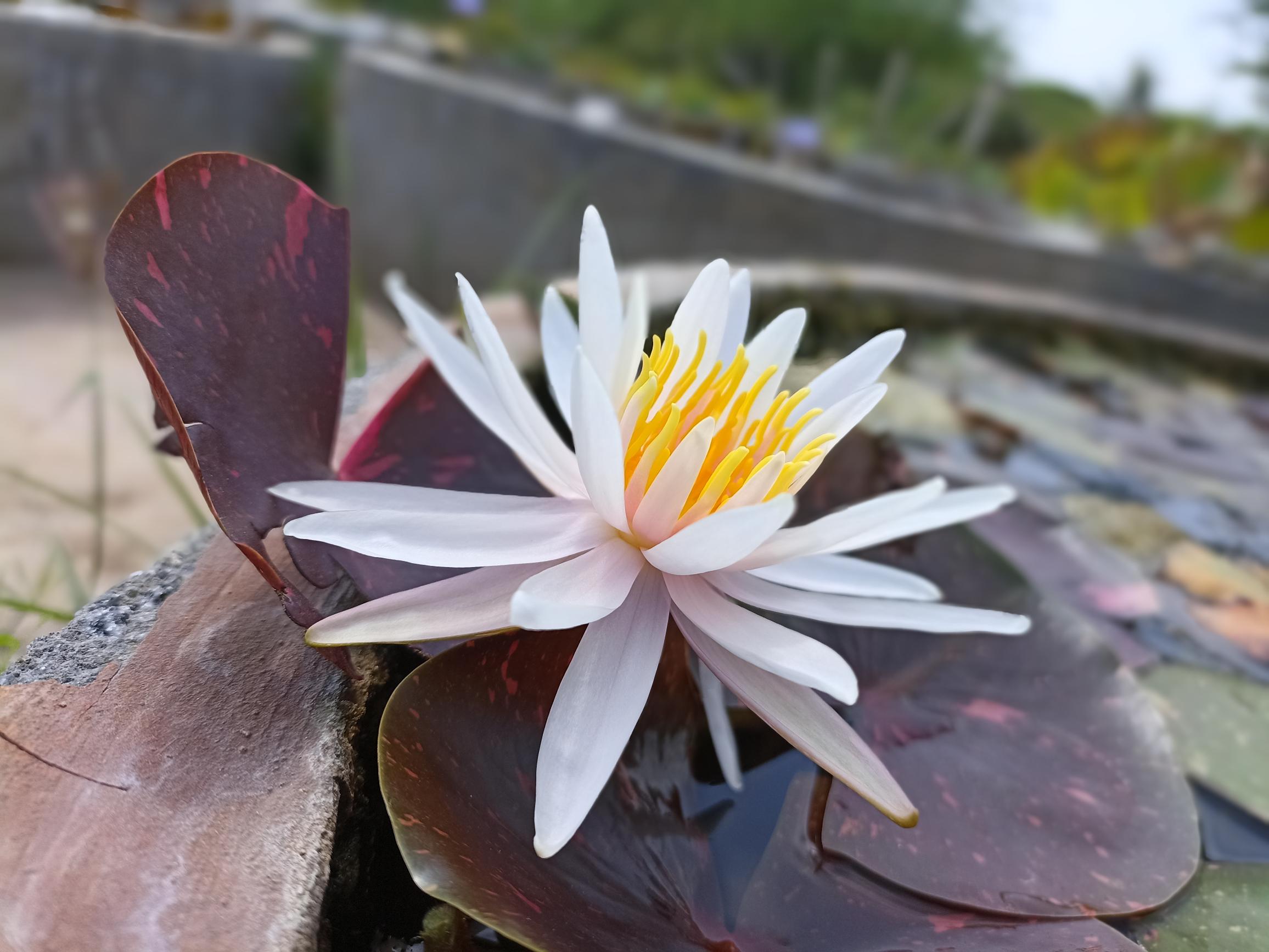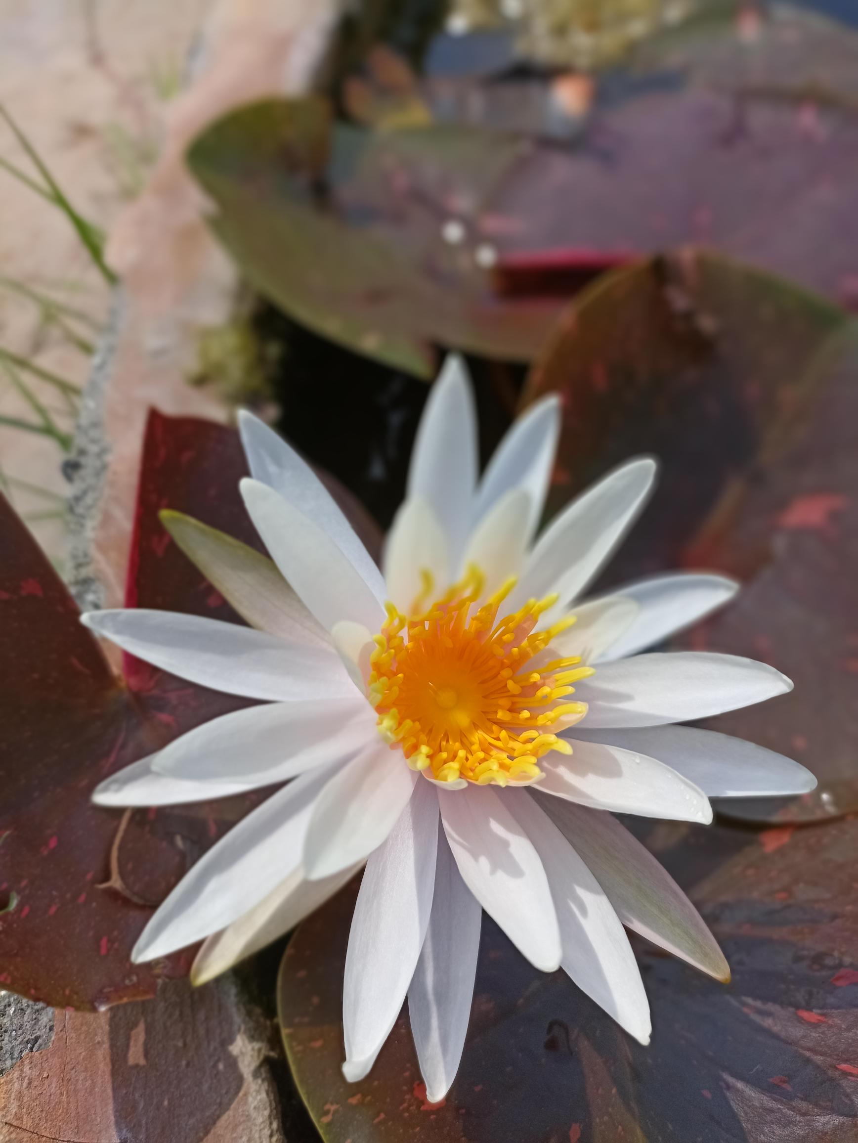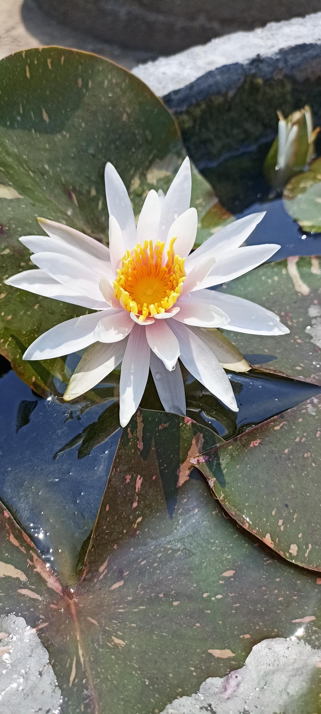 The arc-en-ciel is an interesting waterlily for a collector. It showcases exquisitely beautiful leaves. Plain olive green to burgundy red, each lily pad is different. Flowers are shell pink, star shaped and fragrant. Moderate bloomer.