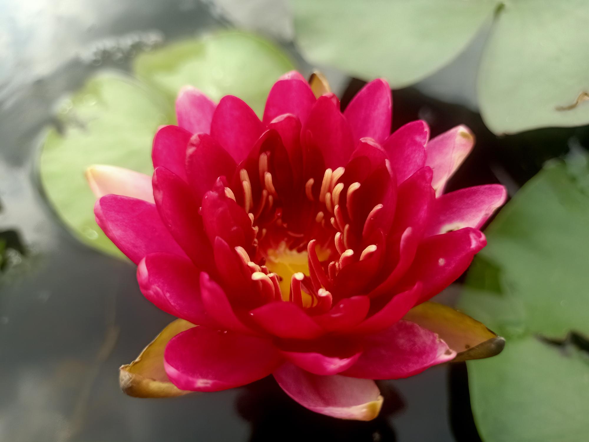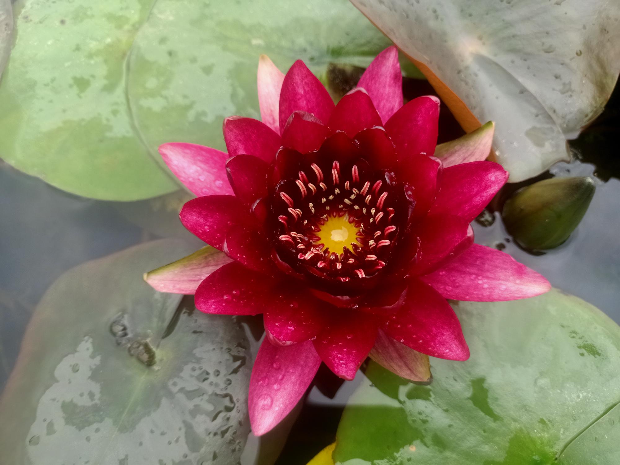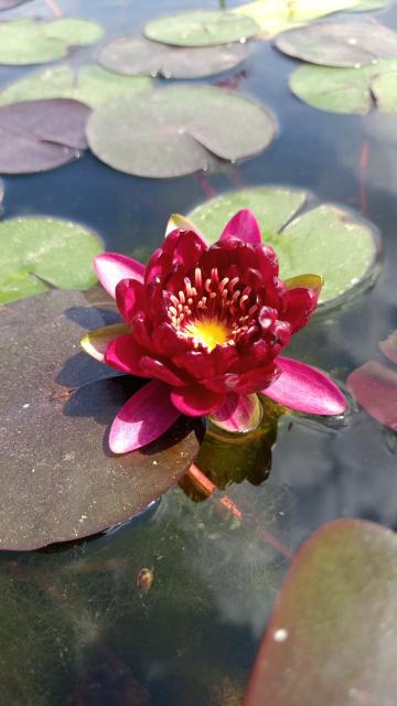 Black Princess is one of the most beautiful red water lilies around. Flowers are deep and red cup shaped with orange stamens. A free flowering hardy suitable for any pond size.