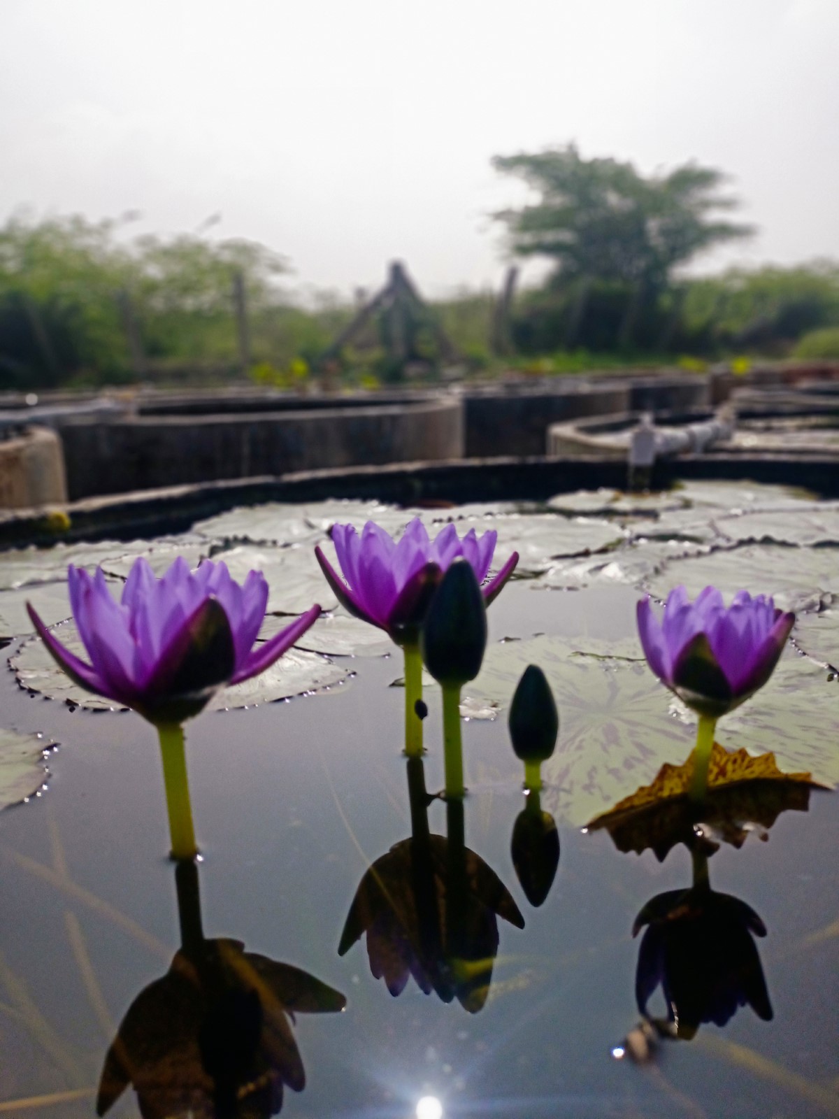 Impressive rich blue flowers that are enhanced by the variegated spider web foliage. Flowers have a purplish tinge on the first few days and slowly turn into a rich blue. Blooms profusely!