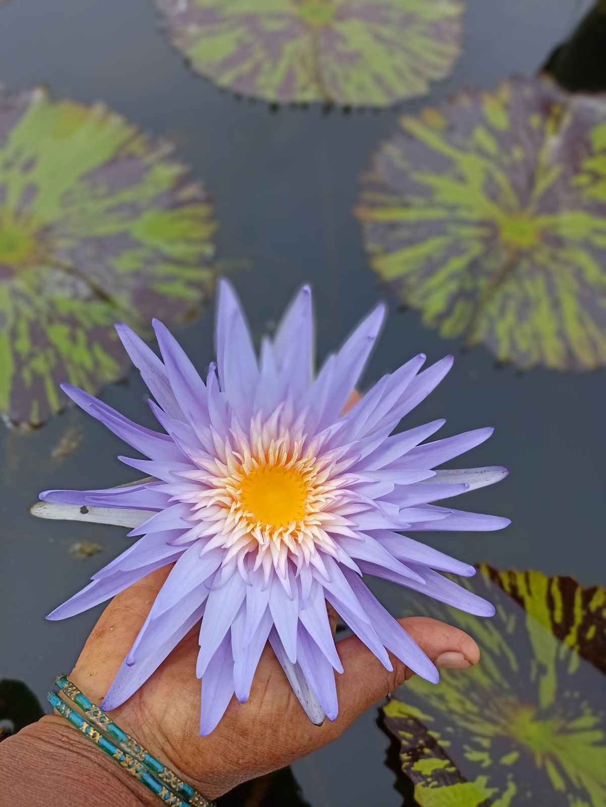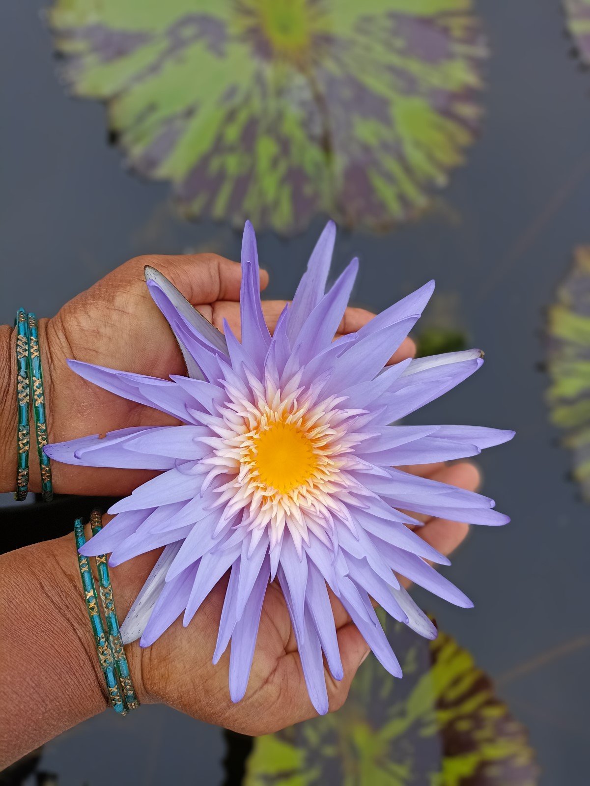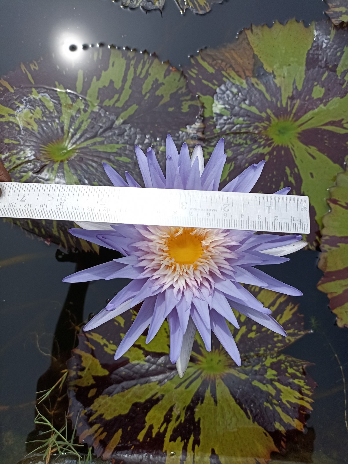 We love this tropical waterlily for its large flowers that must be seen to be believed! It’s blue flowers with pink petaloids are absolutely stunning. Lily pads are green with maroon mottling providing a beautiful contrast.