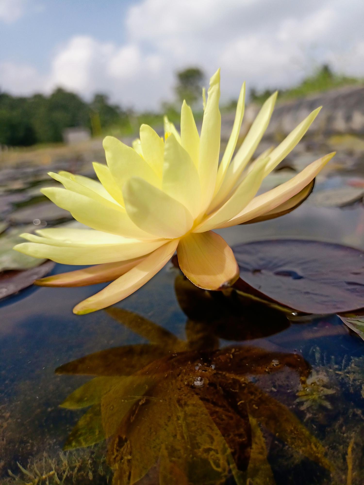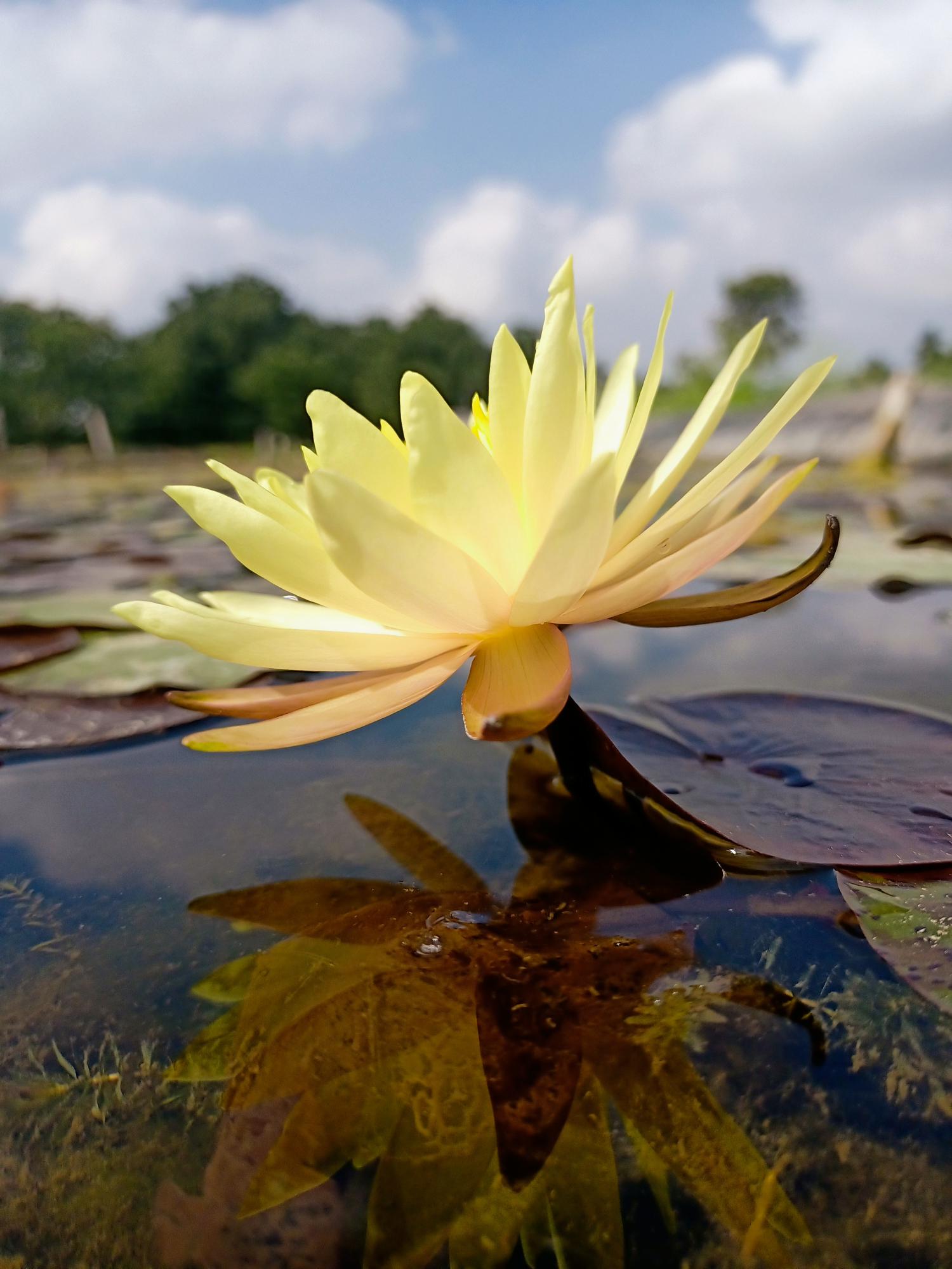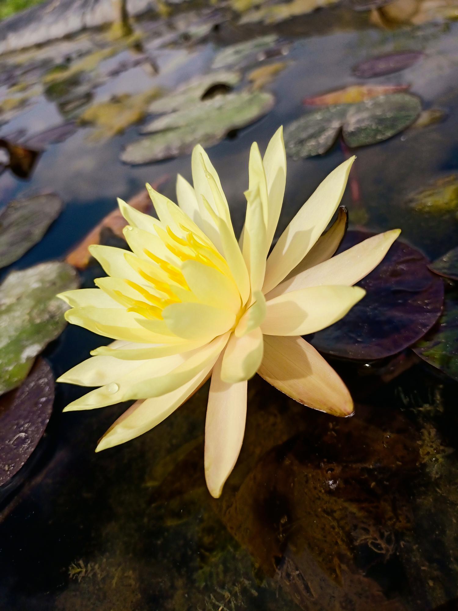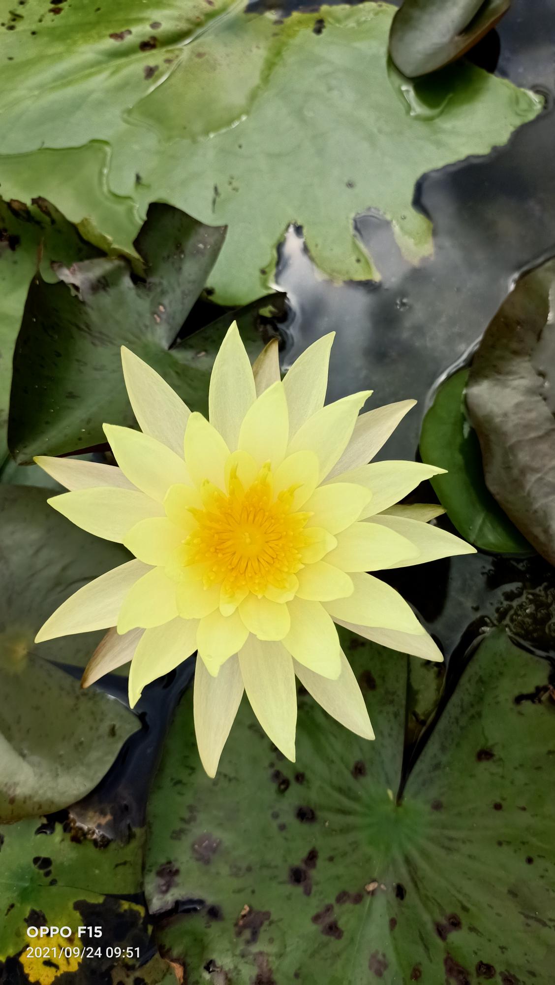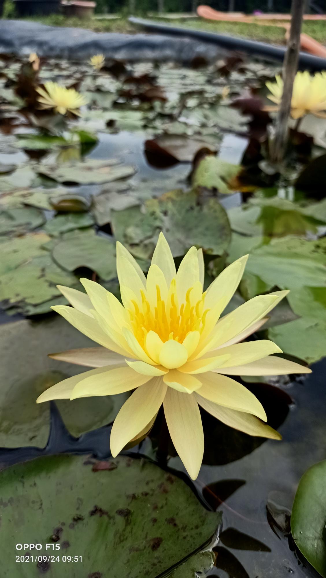 That variety is a profuse bloomer, flowers stands up over the water, stellate yellow color. Wonderful for any kind of pond.