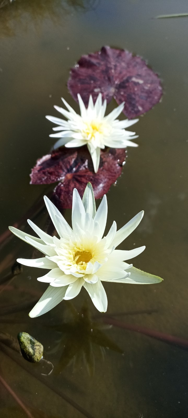 This remarkable waterlily, crafted by hybridizer Craig Presnell, stands out as an extraordinary and prize-winning creation. The blossoms of this tropical marvel exhibit a stellate and flat form, radiating true magnificence. Adorned with petals in a light yellow hue that almost mimics the appearance of white, accompanied by golden yellow stamens, this waterlily emerges as a truly striking specimen.
