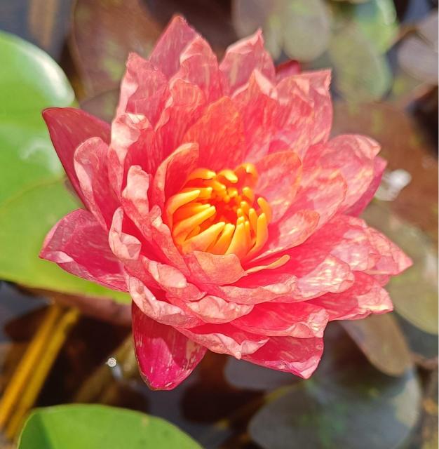 Hybridized by Dr. N. Nopchai Chansilpa from Thailand, this award winning water lily is full of little surprises. The blooms vary from apricot to deep pink with yellow streaks but sometimes may bloom half solid yellow and half pink! The lily pads on this hardy have a reddish hue and are interesting to look at. The Wanvisa is a profuse bloomer and a wonderful addition to any water garden.